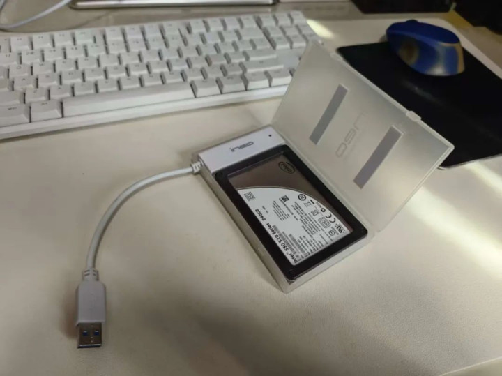 唉,今天写一件苦逼的事,顺便问问大家咋解决。我之前有一块240G的英特尔2.5英寸固态硬盘,接口是SATA。原本是放在我前一台主机中当系统盘的,后来我把主机拆散卖了,留下它舍不得卖。